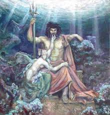 Poseidon é o deus dos oceanos, é o criador dos cavalos e na série Percy Jackson e os Olimpianos é pai de Percy. Ele tem uma certa rivalidade com sua sobrinha Atena porque os dois queriam ser deus patrono de Atenas, eles fizeram uma competição onde Atena ganhou. Poseidon é conhecido por seu tridente.